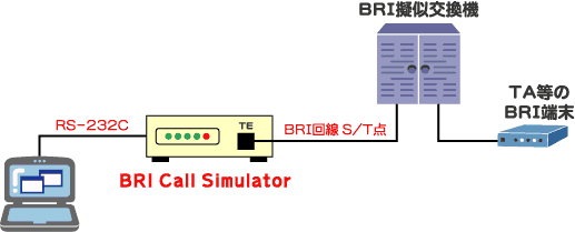 BRI Call SimulatorはBRI(ISDN64)回線のS/T点を収容し、BRI回線に高負荷で呼を設定することができる、擬似呼発生装置です。パラメータの設定により、同時に発生させるコール数、コール間隔、通話時間等が設定でき、最大で毎秒同時に2コールのSETUPを送出することが可能です。受信端末としてご利用いただくことも可能です。
